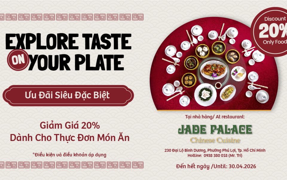 Hành trình khám phá ẩm thực Trung Hoa với những hương vị đặc trưng, đậm đà và cuốn hút đang chờ đón bạn tại Nhà hàng Jade Palace. Đặc biệt, ưu đãi GIẢM 20% trên tổng hóa đơn món ăn […]