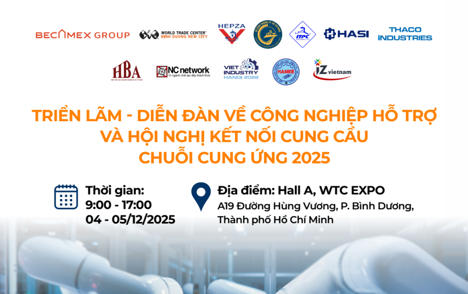 Triển lãm – Diễn đàn Công nghiệp Hỗ trợ và Hội nghị Kết nối Cung – Cầu HASI sẽ diễn ra vào 04–05/12/2025 tại Hall A – WTC Expo, quy tụ hàng trăm doanh nghiệp sản xuất – chế tạo, […]
