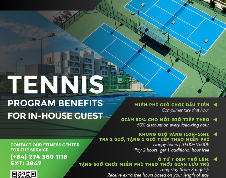 Đặt phòng ngay hôm nay và tận hưởng đặc quyền sử dụng sân tennis hiện đại, thoáng mát, rộng rãi của chúng tôi! Nâng tầm trải nghiệm nghỉ dưỡng của bạn với những cú giao bóng đỉnh cao! Liên hệ […]