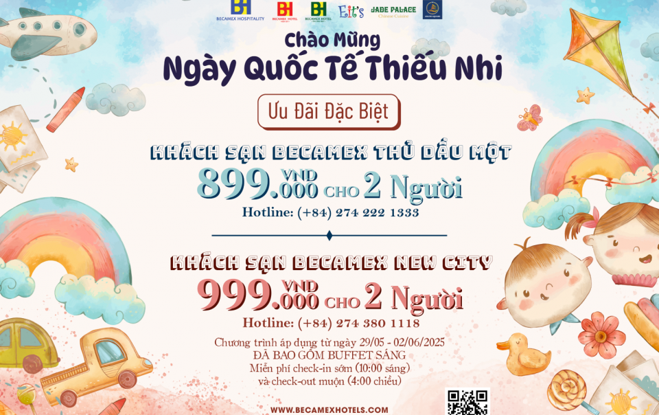 Mừng quốc tế thiếu nhi ngày 1 tháng 6 sắp tới, ưu đãi đặc biệt khi đặt phòng tại: ✓ BECAMEX HOTEL NEW CITY chỉ 999,000 VNĐ nett dành cho 2 người ✓ BECAMEX HOTEL THỦ DẦU MỘT 899,000 VNĐ […]