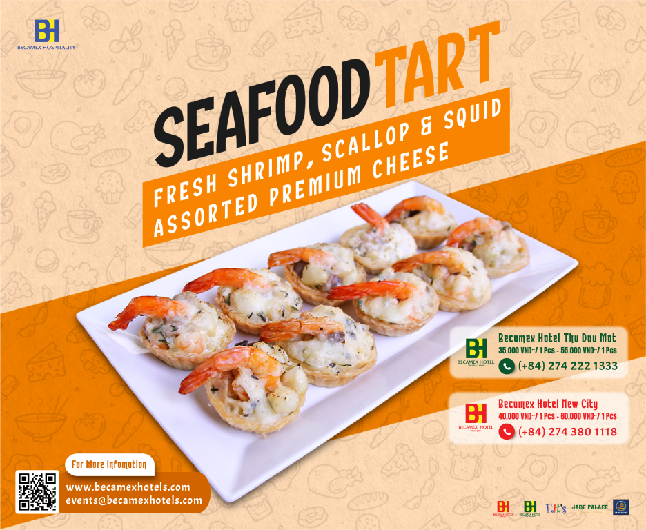 With a light, crispy crust, like a mini pizza, mixed with a layer of seafood scallops, shrimp and a salty, slightly fatty flavor from mascarpone cheese mixed with goat’s milk cheese and fresh cream creates an attractive aroma, the seafood tart of Becamex Hotel will definitely satisfy culinary enthusiasts.