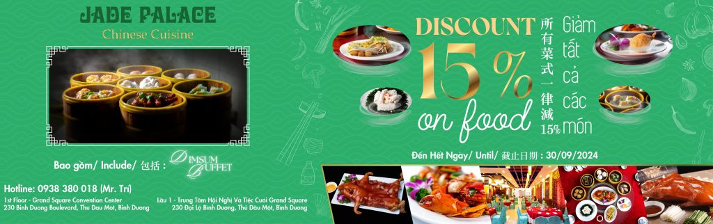 SUPER PROMOTION: discount up to 15% on food at Jade Palace – Chinese Cuisine