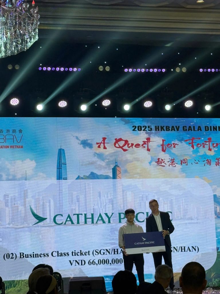 Chúng tôi đã có một bữa tối tuyệt vời khi tham dự sự kiện HKBAV 2025 GALA DINNER “A QUEST FOR FORTUNE” tại khách sạn The Reverie Saigon và cũng xin chúc mừng đồng nghiệp của chúng tôi, anh Ung Văn Tuấn đã may mắn chiến thắng giải đặc biệt là 01 vé máy bay khứ hồi hạng thương gia chặng Sài Gòn/Hà Nội đi Hồng Kông.