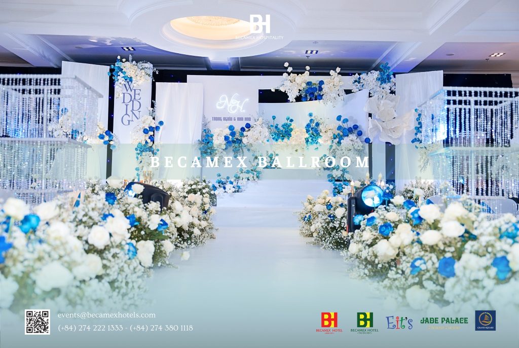 Trong ánh sáng lung linh của sảnh Becamex Ballroom, mỗi chi tiết đều góp phần tạo nên một ngày trọng đại trọn vẹn, từ cái nắm tay bước vào lễ đường cho đến lúc cùng nâng ly chúc mừng.