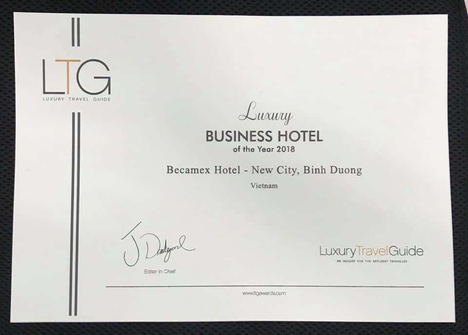 Khách Sạn Becamex Hotel New City vinh dự được nhận giải thưởng “Khách Sạn sang trọng dành cho doanh nhân năm 2018” (Luxury Business Hotel of the Year 2018) của Luxury Travel Guide Awards. Giải thưởng này nhằm tôn vinh những khách sạn sang trọng, đẳng cấp, tiện nghi. Việc bình chọn dựa trên rất nhiều tiêu chí khắt khe do biên tập viên và đọc giả. Để chúc mừng cho giải thưởng rất giá trị và cũng là nhân cơ hội giới thiệu về hai khách sạn Becamex Hotel New City và Becamex Hotel Thu Dau Mot, tập đoàn khách sạn Becamex Hospitality rất vinh dự được tiếp đón báo giới, media, các hiệp hội thương mại và doanh nghiệp tại Việt Nam, nhà cung cấp dịch vụ cưới chuyên nghiệp trong không gian ấm cúng của buổi họp báo thứ sáu ngày 30 tháng 11 vừa qua tại khách sạn Becamex Hotel New City.