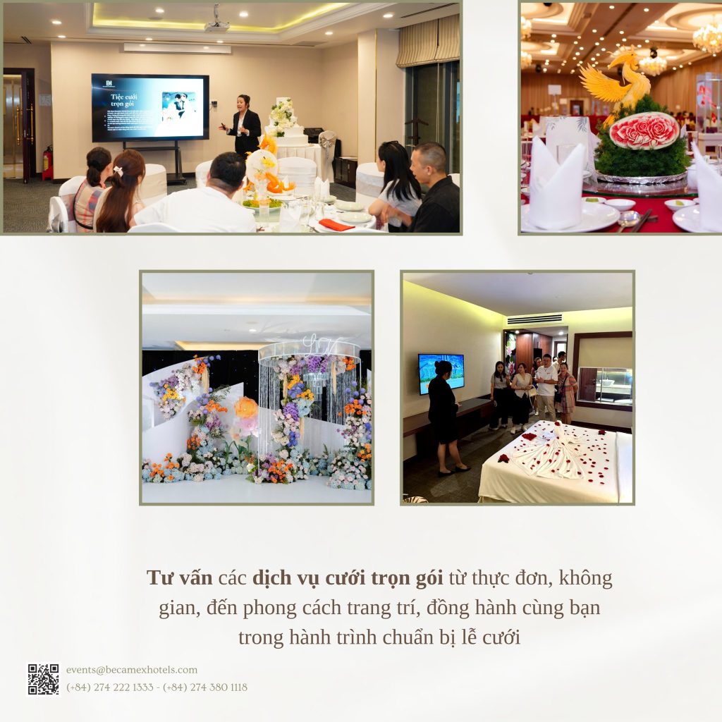 Tiệc Thử Món Cưới tại Becamex là dịp để các cặp đôi cảm nhận hương vị thực đơn cưới, khám phá không gian tiệc và lựa chọn gói cưới phù hợp – tất cả được chuẩn bị nhằm mang đến một ngày cưới trọn vẹn như mong đợi.